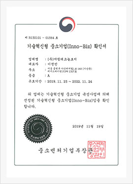 서림테크놀로지는 기술혁신형 중소기업 (Inno-Biz)에 선정되었으며