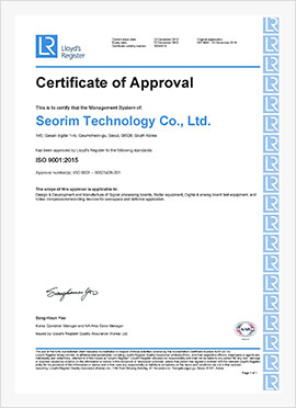 또한 ISO9001 및 AS9100D(KS Q 9100)를 획득하여 철저한 품질 경영을 수행 하고 있습니다.