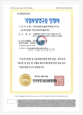 기업 부설 연구소를 인정받아 신기술 개발에 앞장 서고 있습니다.